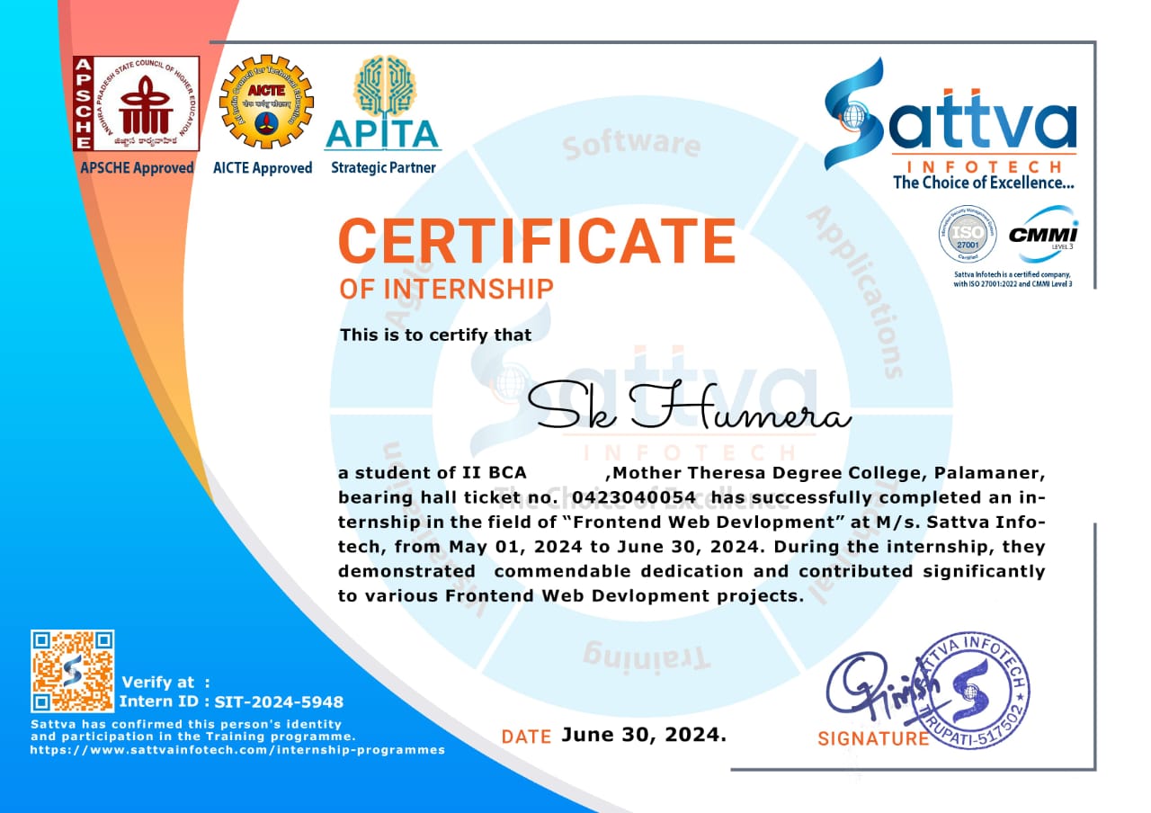 I’m SK Humera, a BCA graduate passionate about building responsive web pages and interactive applications. I enjoy applying my skills to real-world projects, improving both functionality and user experience.